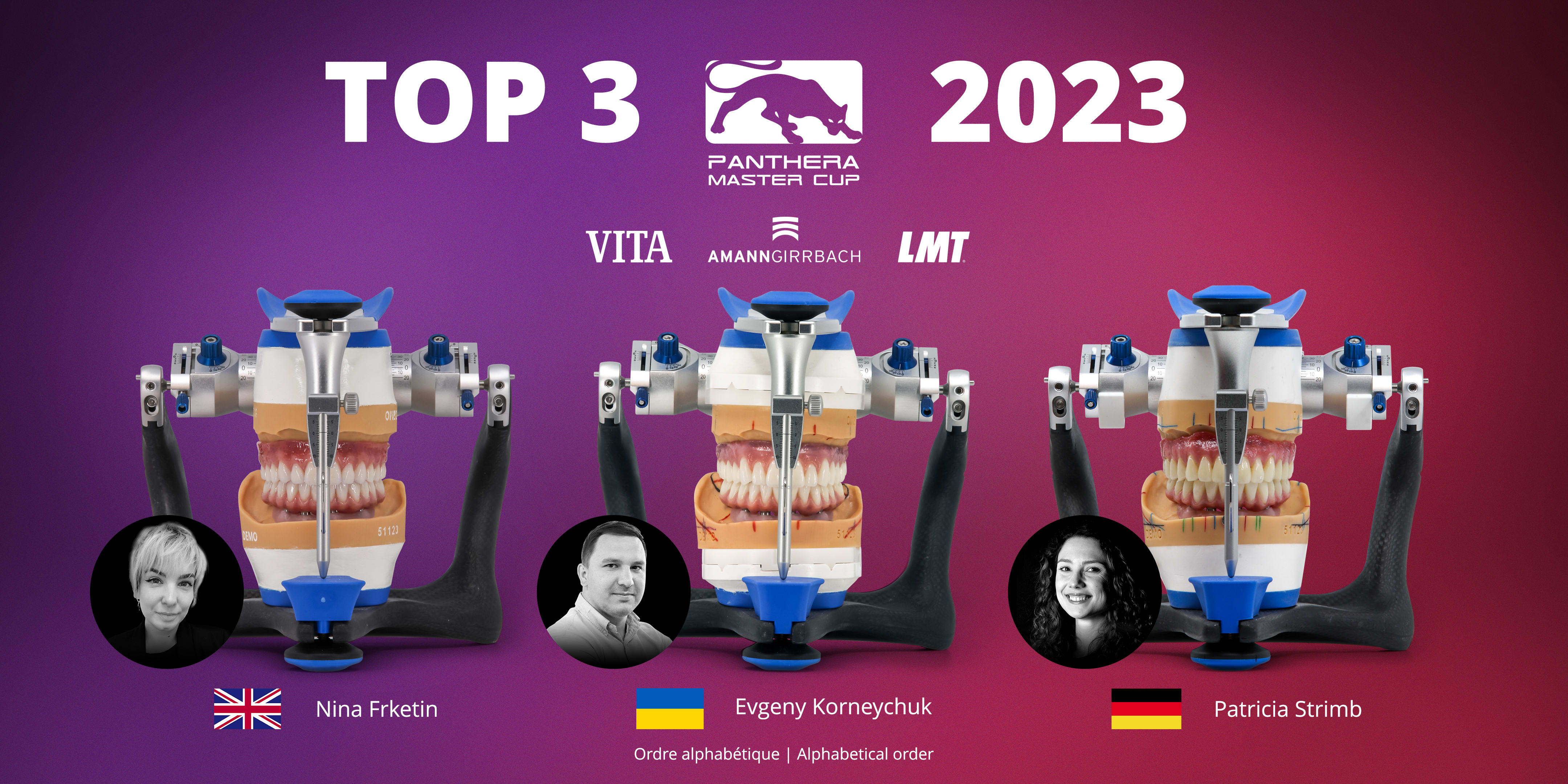 The United Kingdom, Ukraine and Germany are the three countries that will be represented at the 2023 Master Cup Award Ceremony. Nina Frketin, Evgeny Korneychuk and Patricia Strimb (Alphabetical order) will learn their respective positions and receive over $75,000 in prizes during the ceremony held on October 6, 2023, at Panthera Dental headquarters.